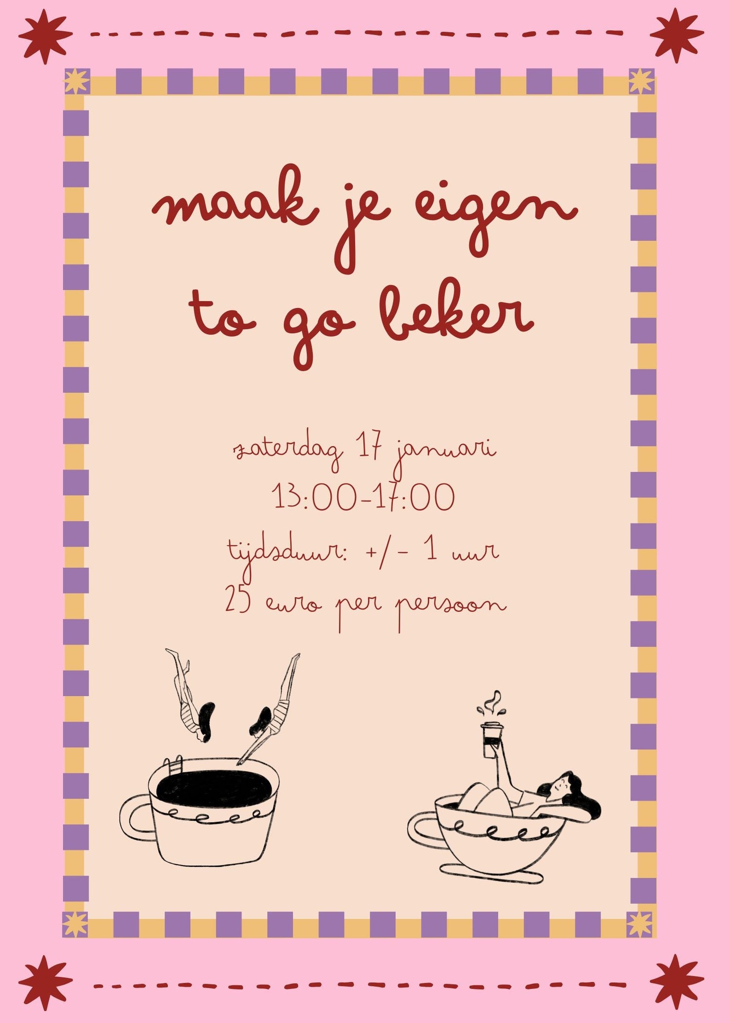 Op zaterdag 17 januari ben je welkom bij Atelje Crane voor een gezellige inloopdag. Tijdens deze middag ga je zelf aan de slag met klei en maak je jouw eigen beker of beker to go.
